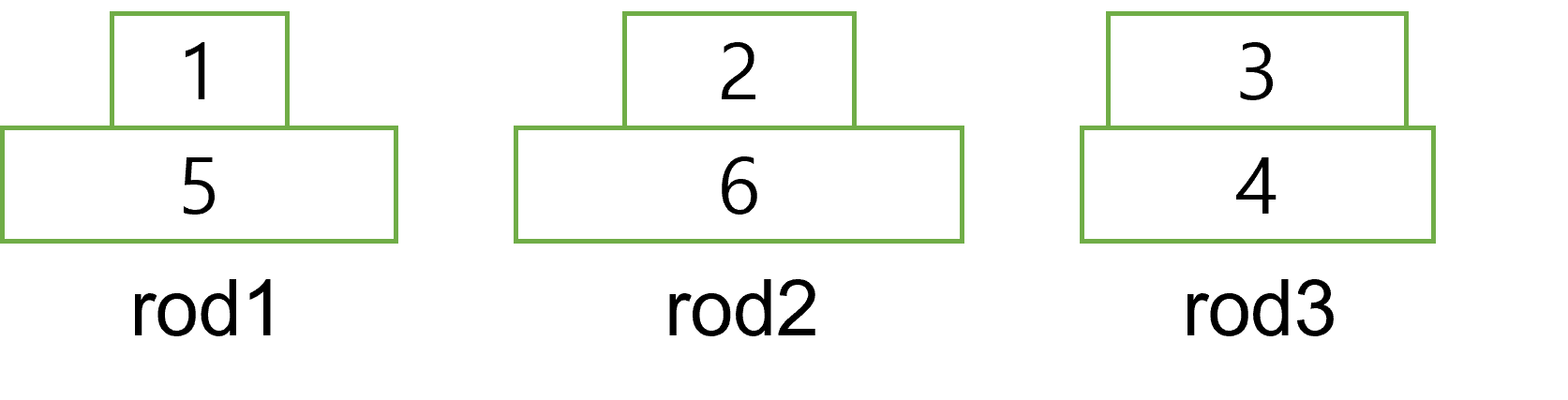 만약 내가 탑을 쌓기 원하는 rod가 3번 rod라고 한다면 최종 모양은 다음과 같다.
