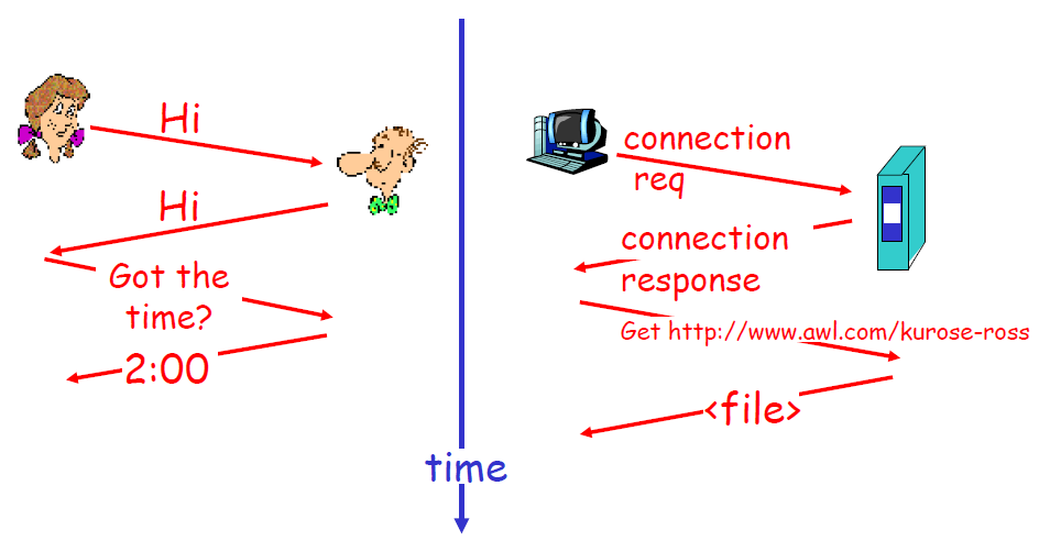 옆 그림은 사람간의 protocol과 네트워크의 protocol을 그린 나타낸 모습이다.