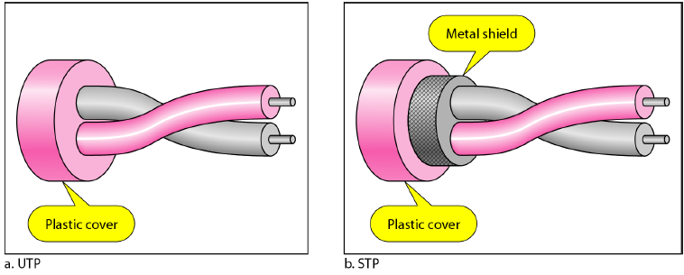 UTP와 STP로 나뉘며 둘의 차이는 Metal shield로 보호되고 있냐 없냐의 차이이다.