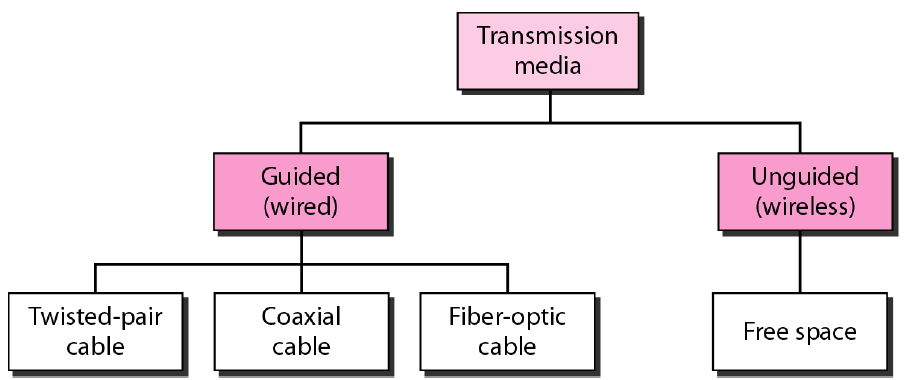 - fiber, copper, radio, satellite 등의 종류가 있고, 나중에 다룰 transmission time과 bandwith에 밀접한 연관이 있다.