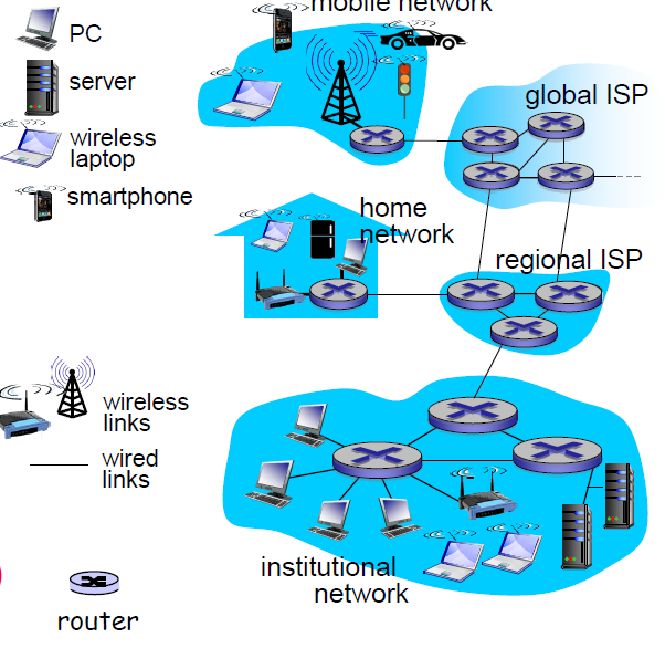 - access networks, physical media : 유선 또는 무선의 커뮤니케이션 링크이다.