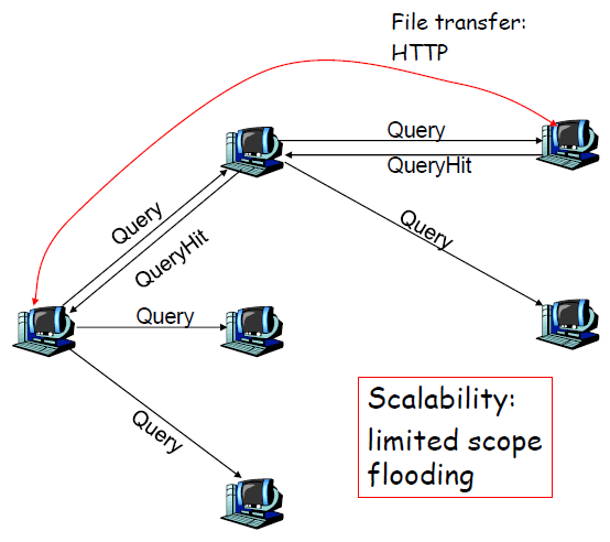 - 피어는 자신에게 연결된 피어들에게 쿼리메시지를 연달아 전송한다.
