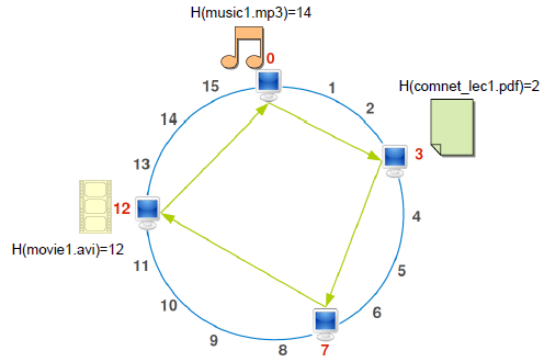 예를들어 movie1.avi는 12번의 ID를 가졌는데 12보다 크거나 같은 ID를 가진 node는 csee.handong.edu이므로 해당 peer에 아이템을 저장하는 것이다.