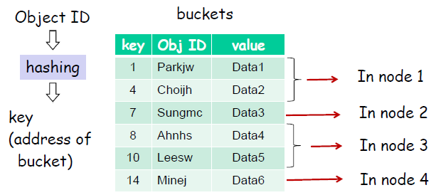 - database는 {object ID, value}형태의 pair를 저장한다.
