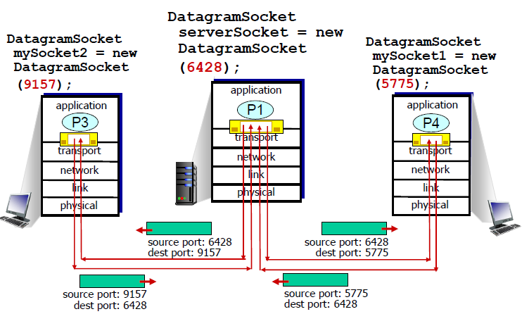 즉 한 호스트로 온 서로 다른 데이터그램이 같은 port넘버를 가리키고 있으면 UDP는 다 받아버리지만 TCP는 src의 IP와 포트넘버도 맞아야 받는다.