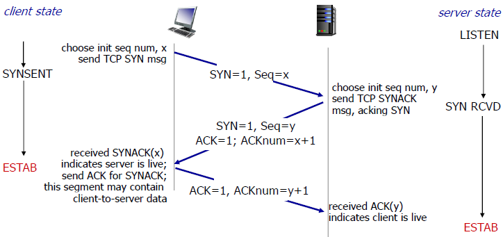 3-handshaking에도 seq num를 붙여 소통한다. 이유는 여러 오류가 발생할 수 있기 때문인데 이에대해서는 옛날 논문에만 있고 요즘은 다루지않는다고 한다.