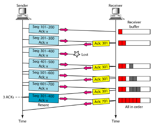 timeout이 일어나면 재전송을 하는데 이때 이미 온 ACK에 대해서 똑같은 ACK이 3번오게되면 timeout이 발생하지 않아도 재전송을 한다. (three duplicaiton ACKs에 의한 fast transmission)