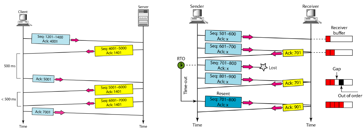 segment를 받은 receiver는 해당 seq number에 해당하는 ACK을 보낸다. 그러나 메시지에 ACK의 번호, 즉 헤더만 보내기엔 너무 비효율적이고 아깝기 때문에 reciever쪽에서도 보낼 데이터가 있다면 같이 보내는게 좋다. 그래서 receiver는 ACK을 보낼때 같이 보낼 데이터가 있는지 없는지 살짝 기다린 후에 있다면 같이보내고 없다면 그냥 보낸다.