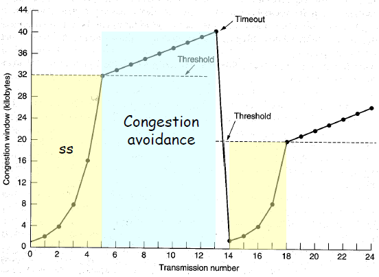 TCP에서 사용되는 congestion control의 메커니즘은 크게 3가지로 나뉜다.