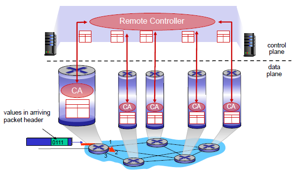 - 원격의 서버에서 실행된다. 즉, data plane은 라우터에서, control plane은 원 격서버에서 작동