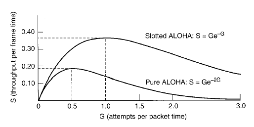 Pure ALOHA의 성능을 수학적으로 계산해 비교했는데, 너무 어려워서 그냥 그림만 올리겠다. poisson 과정에 대해 공부해야 이해할 것 같다.