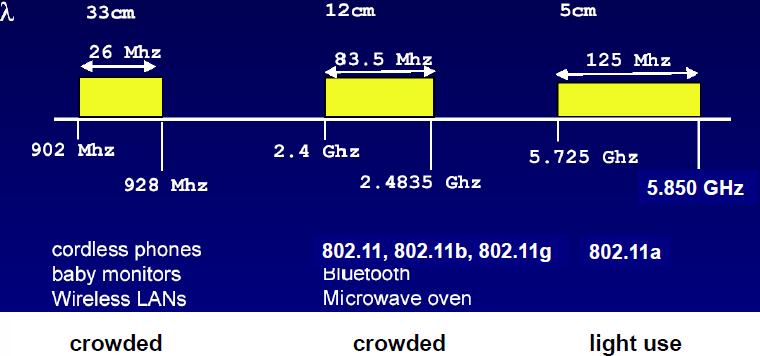 ISM 대역은 위처럼 정부에서 관리를 하는 대역이 아닌 누구나 통신할 수 있는 주파수 대역을 말한다.