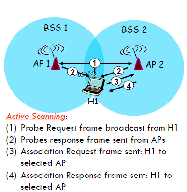 Host는 브로드캐스트를 통해 주변 AP들에게 모두 신호를 보내 그 중 가장 신호의 세기가 큰 AP를 고른다.