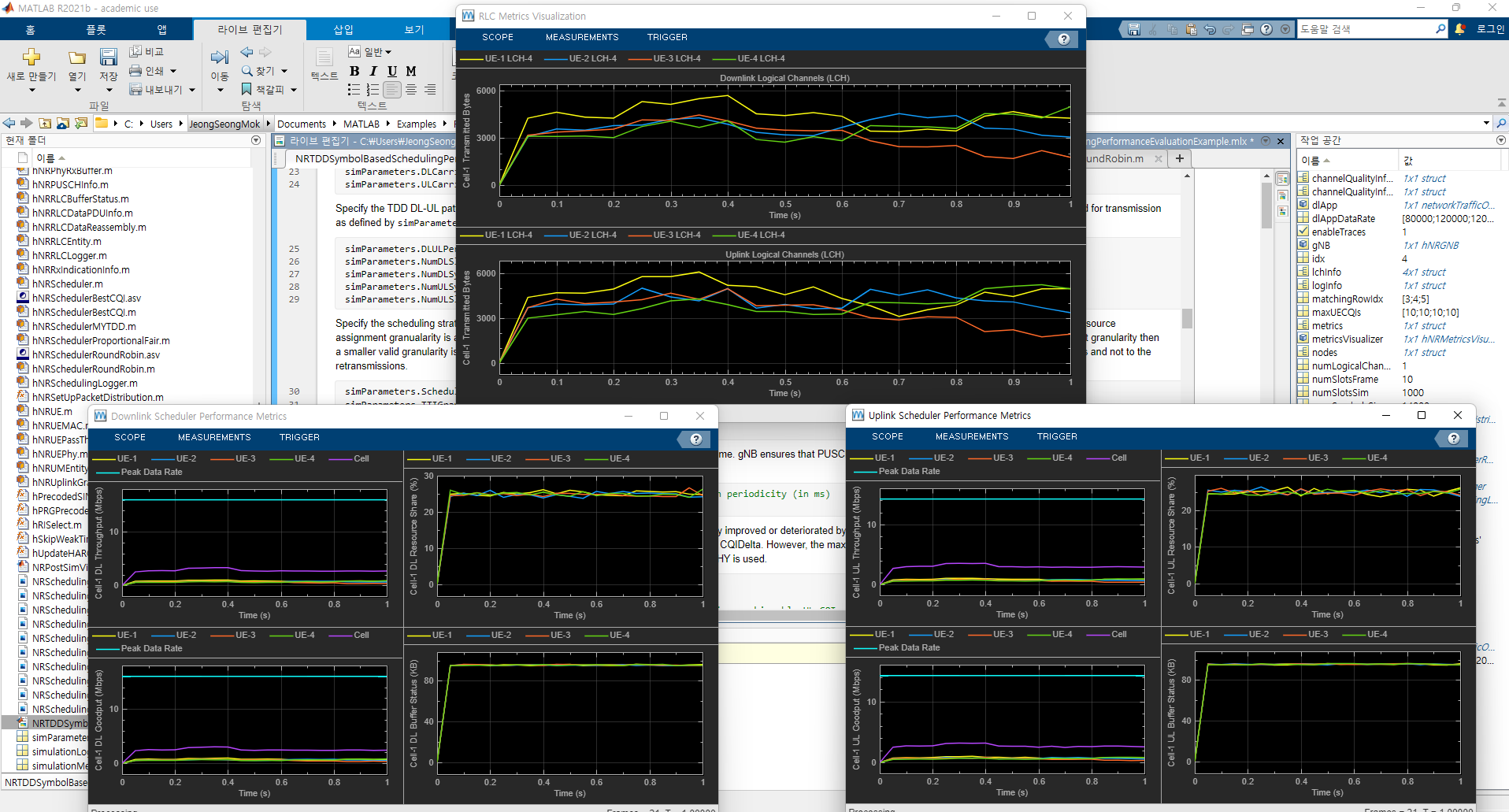 본격적인 5G네트워크 스케쥴링에 앞서 Mathworks에서 제공해주는 NR 실험 모델을 통해 스케쥴링이 어떻게 구현되는지에 대해 이해할 필요가 있었다.