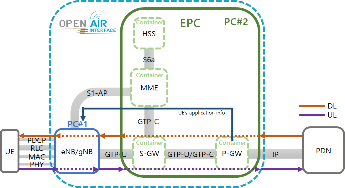 OAI는 기본적으로 EPC의 엔티티들을 도커의 컨테이너 개념을 이용해 구축한다.