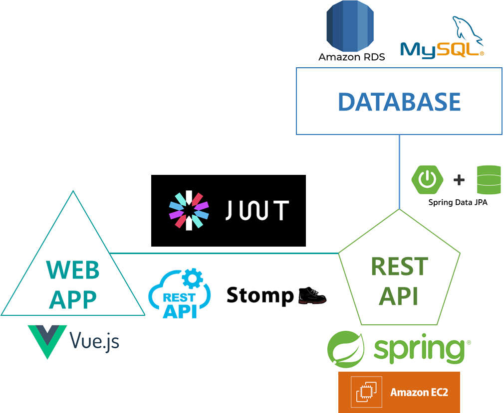 메인서버는 Spring Boot 프레임워크를 이용했다. MVC패턴을 사용하려고 했으나 한 팀원이 프론트를 전담하고 있기 때문에 굳이 View를 사용하지 않고 REST API 서버만 구현하면 돼서 View를 사용하지 않았다.