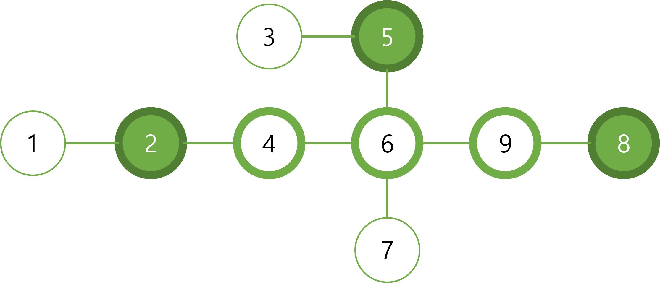 그러나 2번노드는 d(3,4)와 d(4,4)보다 클것이므로 현재 이상황에선 절대 good place가 될 수 없다. (물론 1,3,5도 마찬가지)