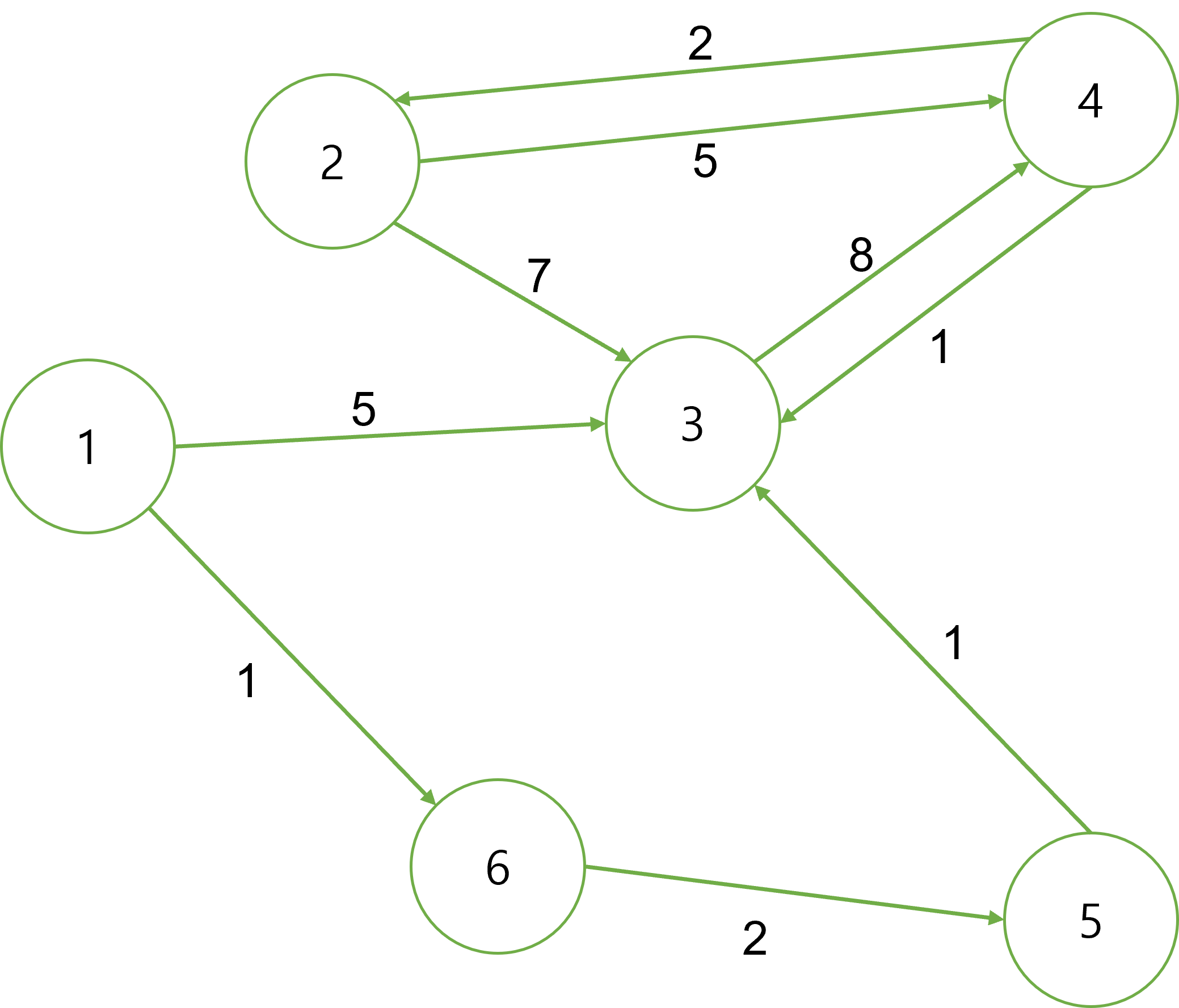 1번 노드에서 각 노드로 가기위한 최소거리를 구하기 위해선 다음과 같은 절차를 밟는다.